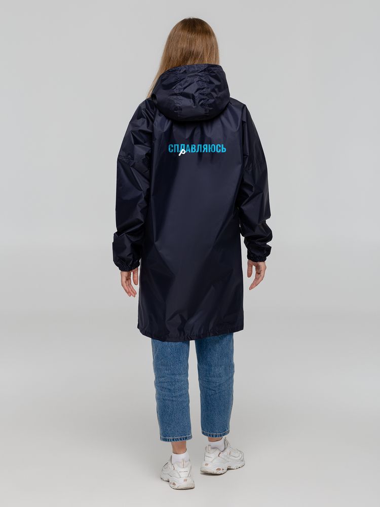 Главная ->Корпоративные подарки и рекламные сувениры на складе -> Promo одежда и аксессуары -> Плащи-дождевики с принтом -> Дождевик «Сплавляюсь», темно-синий, размер L
