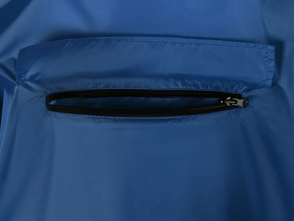 Дождевик - пончо прямого силуэта. Нагрудный карман плаща закрывается на молнию, которая дополнительно защищена клапаном, а еще в него можно полностью убрать дождевик. На дне кармана — ручка-петелька, которая в сложенном виде может использоваться для подвешивания.