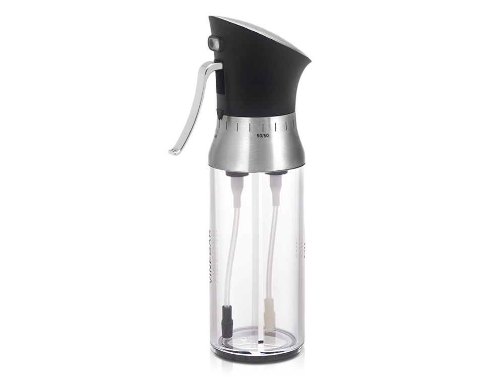 - 2 в 1: две независимые ёмкости в одном корпусе — для масла и уксуса, каждая по 95 мл