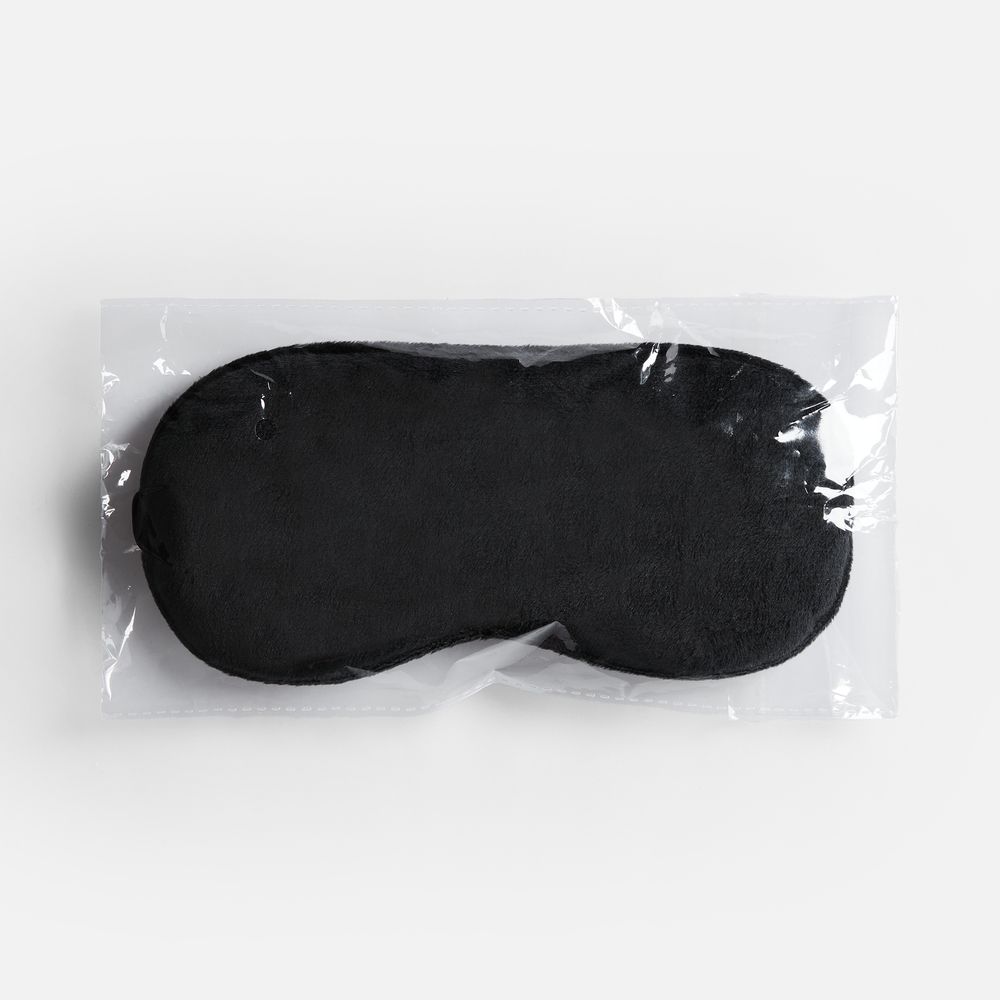 Двухстороняя маска для сна Veluto, черная с логотипом компании - отличный способ заявить вашу корпоративную идентичность.