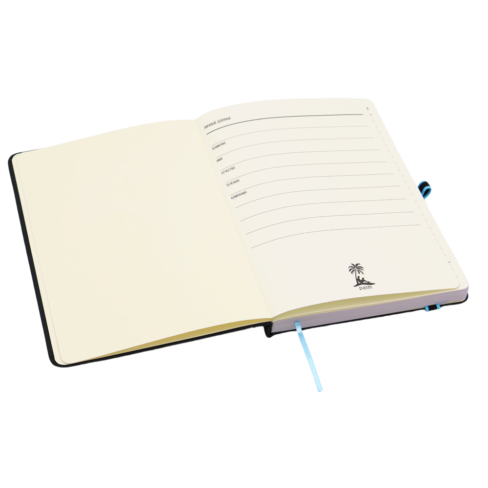 Ежедневник Sir Lewis — выполнен в твердой обложке. Имеет удобную, широкую резинку (1 см.) и держатель для ручки с ярким акцентом. Закладка и край — также в акцентном цвете. В начале ежедневника страничка с личными данными.