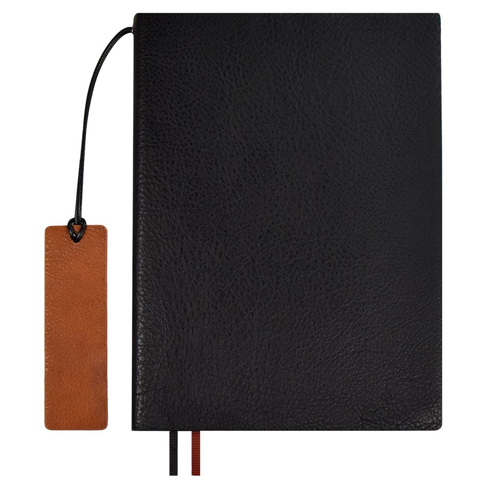 Ежедневник с гибкой обложкой и закладкой из искусственной кожи, дополнен капталом и двойным ляссе.