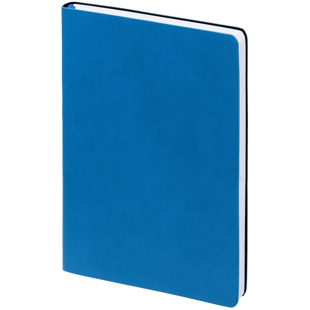 Ежедневник с гибкой обложкой, выполнен из материала Latte, ярко-синий, дополнен ляссе в цвет обложки.