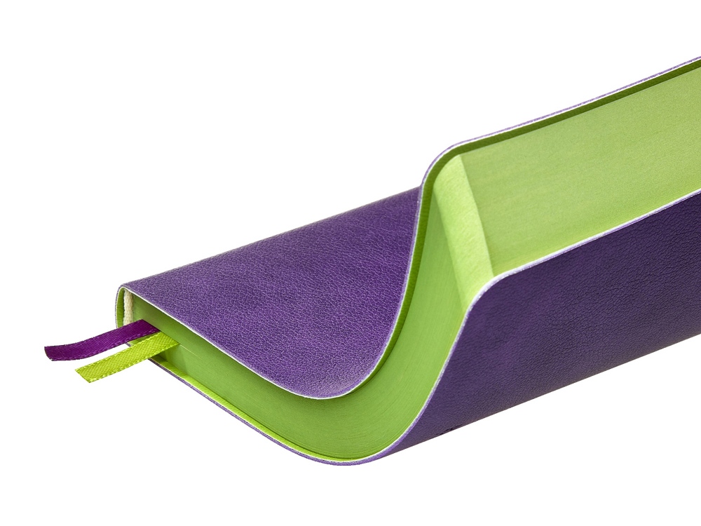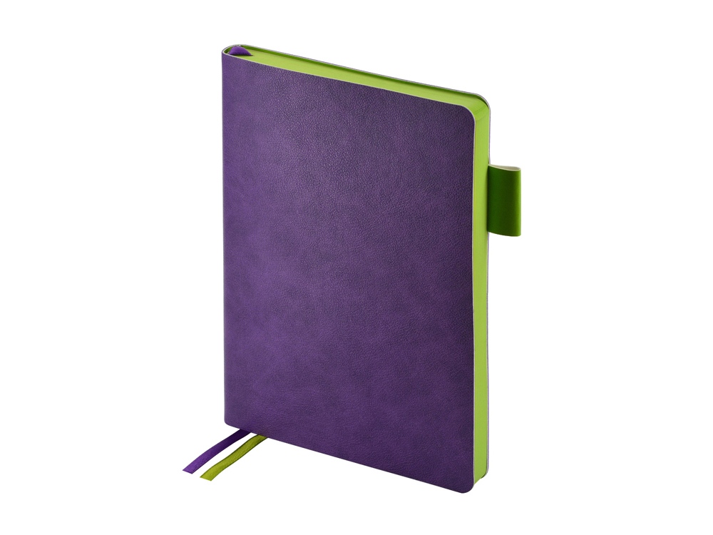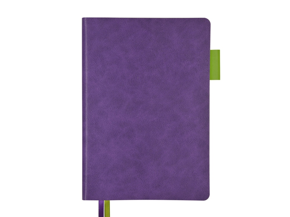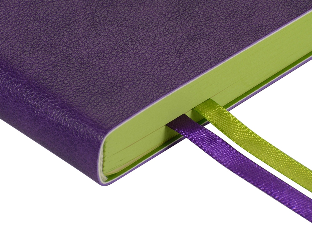 Ежедневник А5 датированный Boston 2026, фиолетовый с салатовым обрезом с логотипом компании - отличный способ заявить вашу корпоративную идентичность.