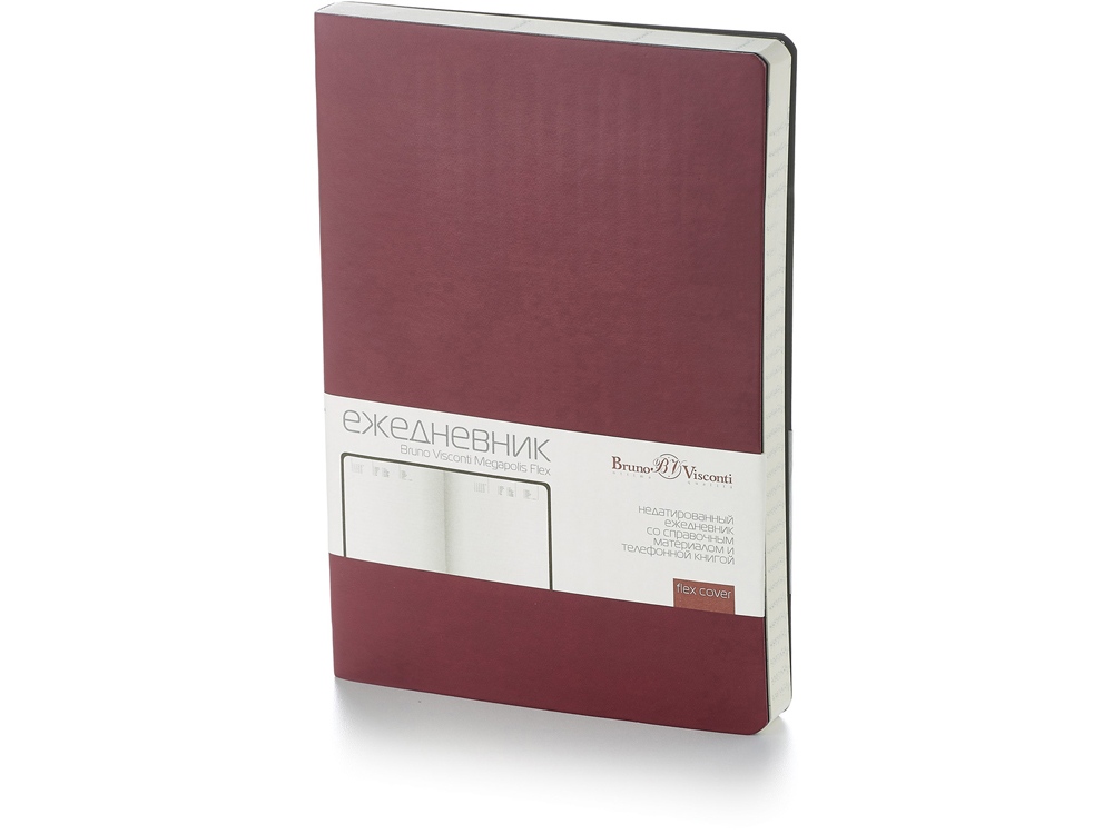 Недатированный ежедневник Megapolis Flex от бренда Bruno Visconti - это качественный корпоративный подарок по выгодной цене, произведенный специально под персонализацию. Представлен в универсальном формате А5 и состоит из 272 страниц. Элегантная закругленная flex обложка из гладкого кожзама имеет гибкую конструкцию и приятна на ощупь. А интегральный переплет позволяет сэкономить место в деловой сумке или портфеле – ежедневник можно просто свернуть в трубку или согнуть пополам.