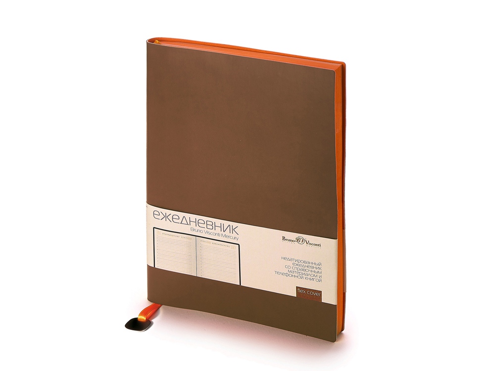 Ежедневник А5 недатированный Mercury, коричневый с логотипом компании - отличный способ заявить вашу корпоративную идентичность.