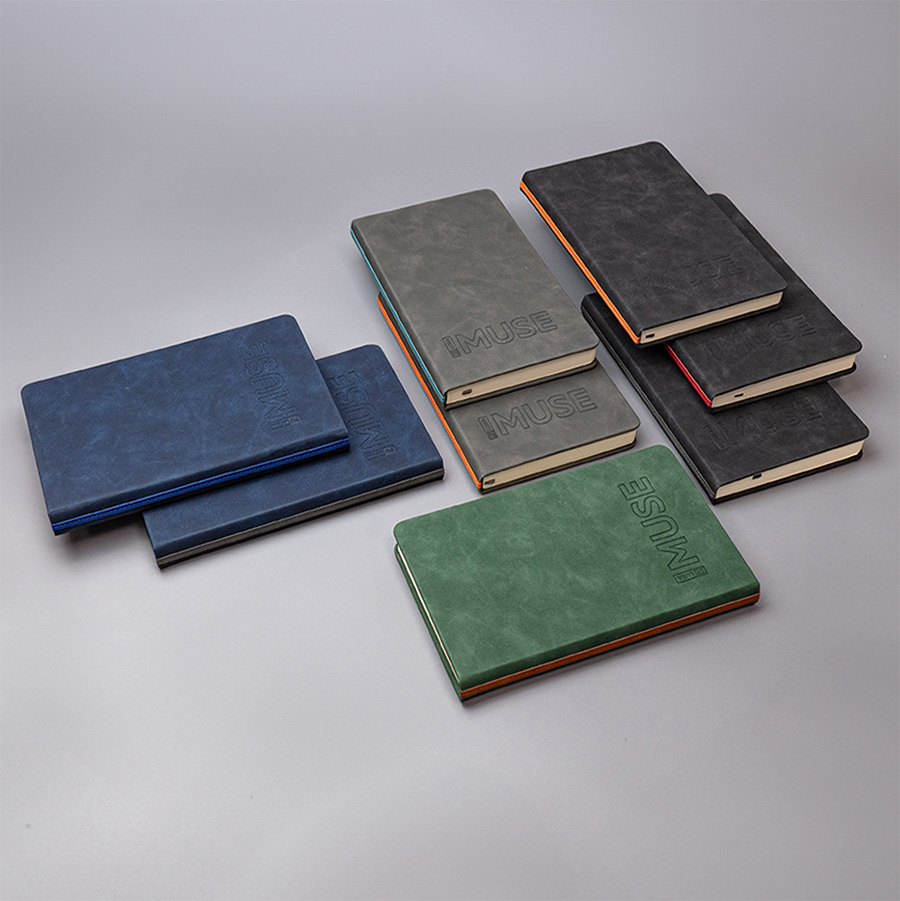 Ежедневник недатированный Muse, черный, формат А5, с декоративной красной полосой, блок в линейку с логотипом компании - отличный способ заявить вашу корпоративную идентичность.
