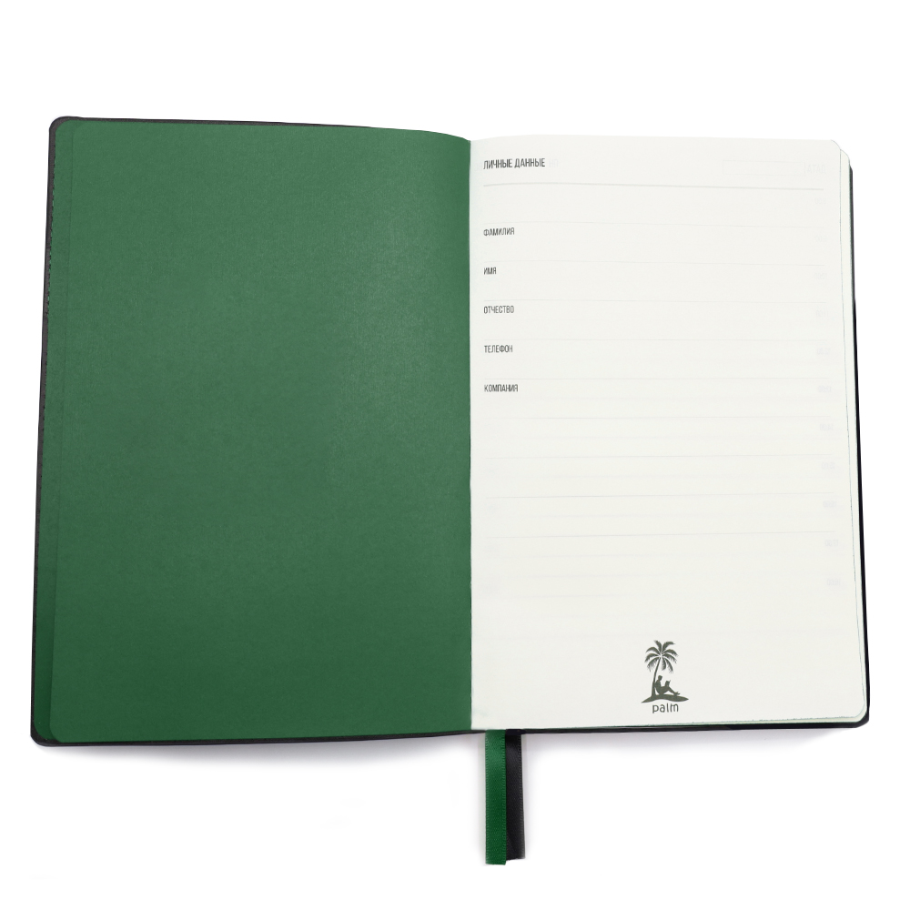 Компания «Эклектика BY» осуществляет нанесение логотипа на сувенирную продукцию: Ежедневник A5 недатированный Efemero в мягком переплёте, черный/тёмно-зеленый. Арт. 462253