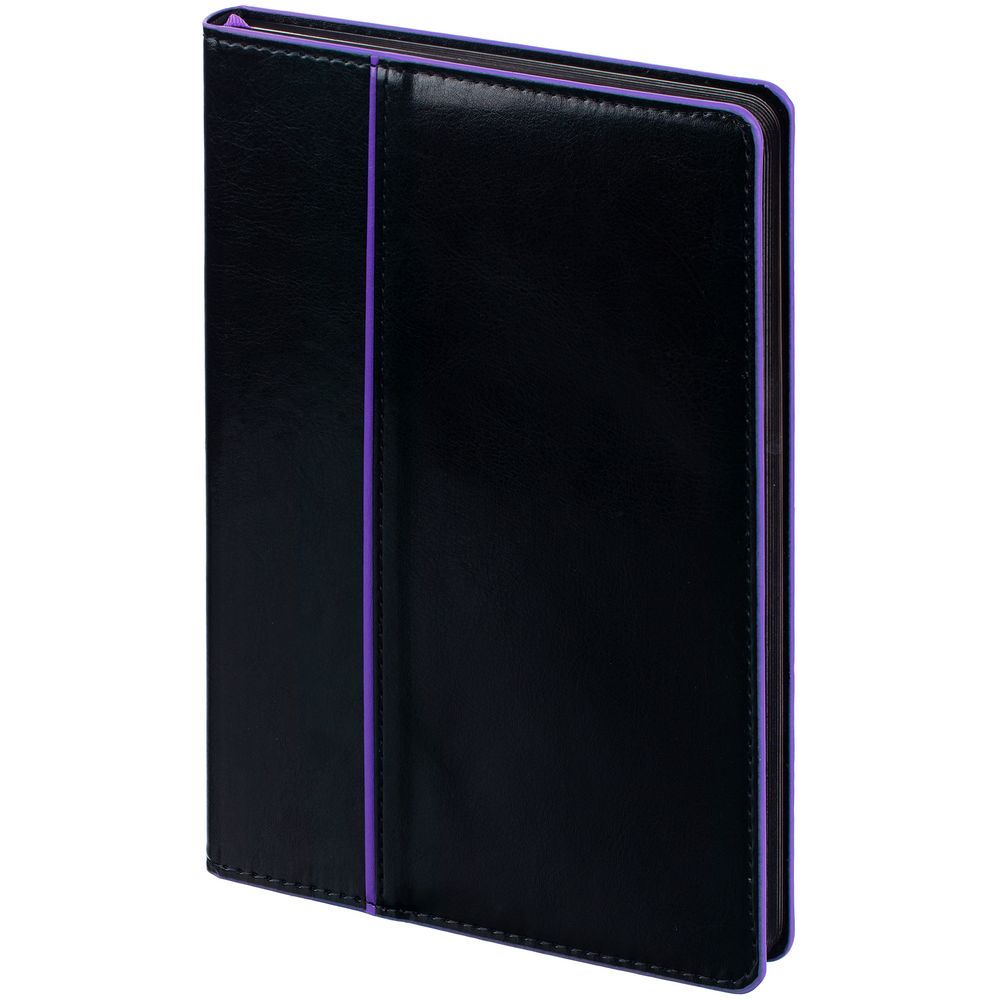 Ежедневник Alanis, недатированный, черный с фиолетовым с логотипом компании - отличный способ заявить вашу корпоративную идентичность.