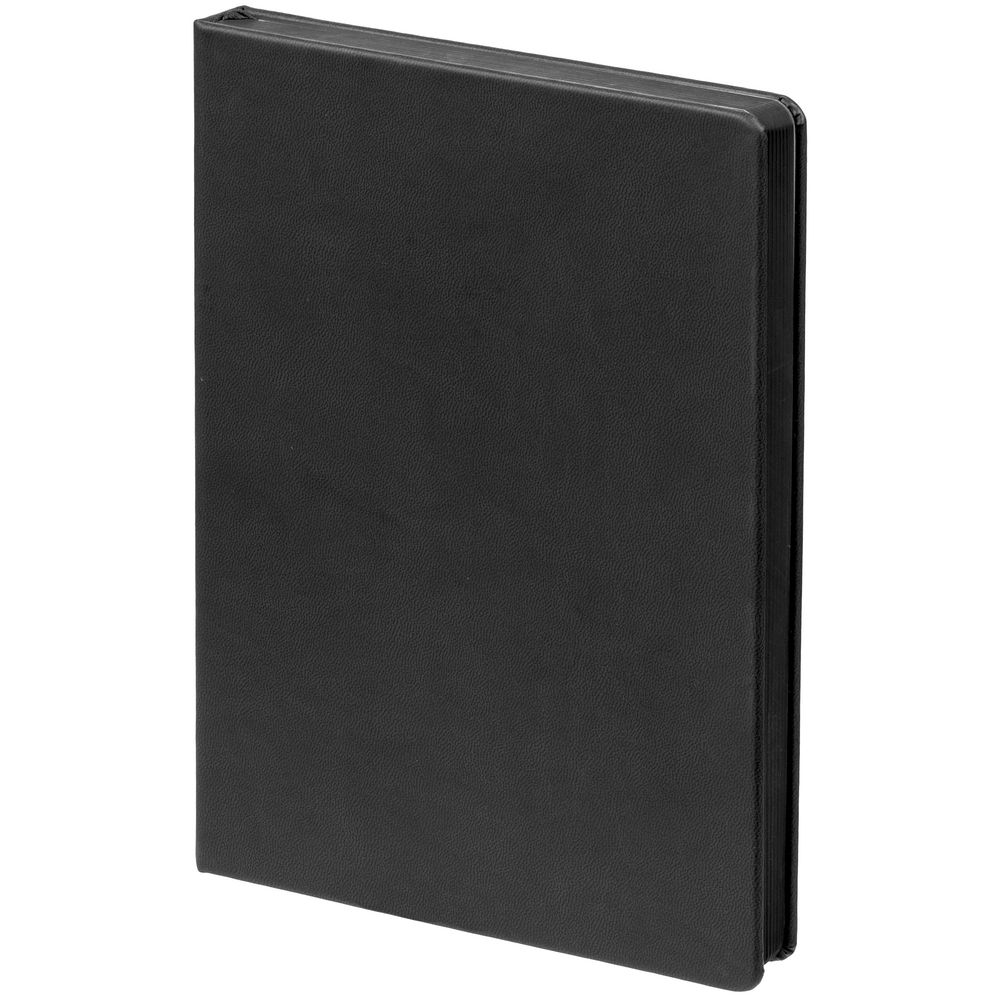 Ежедневник с твердой обложкой и тонированным обрезом. Выполнен из материала Latte, черный, дополнен ляссе в цвет обложки.