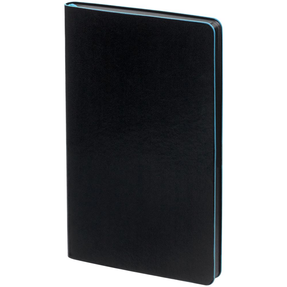 Ежедневник Trait, недатированный, черный с голубым с логотипом компании - отличный способ заявить вашу корпоративную идентичность.