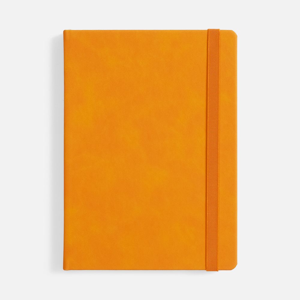 Ежедневник с твердой обложкой, выполнен из материала Nubuck Touch, оранжевый OO, дополнен ляссе в цвет обложки.
