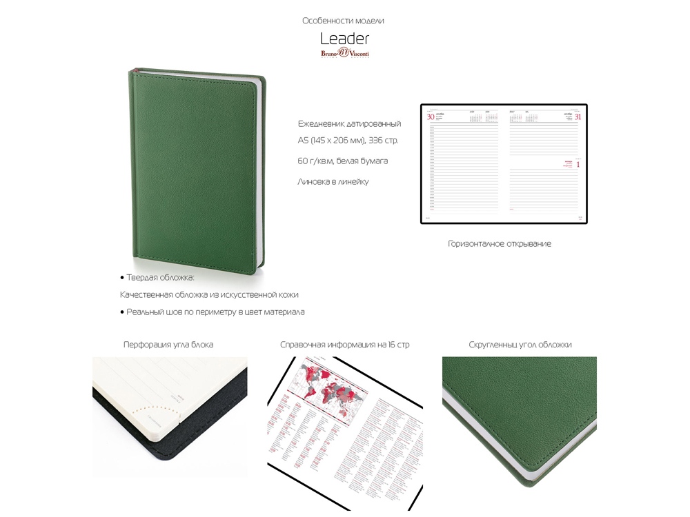 Датированный ежедневник Альт серии Leader станет вам незаменимым помощником. Обложка ежедневника со скруглёнными уголками выполнена из искусственной кожи со строчкой по периметру в цвет. Переплет блока книжный. Блок произведен из бумаги плотностью 60 г/м2. Страницы белые с двухцветной печатью. Углы блока перфорированные. Есть страница для личных данных, 16 страниц справочной информации. Ляссе блока бордовое 6 мм.