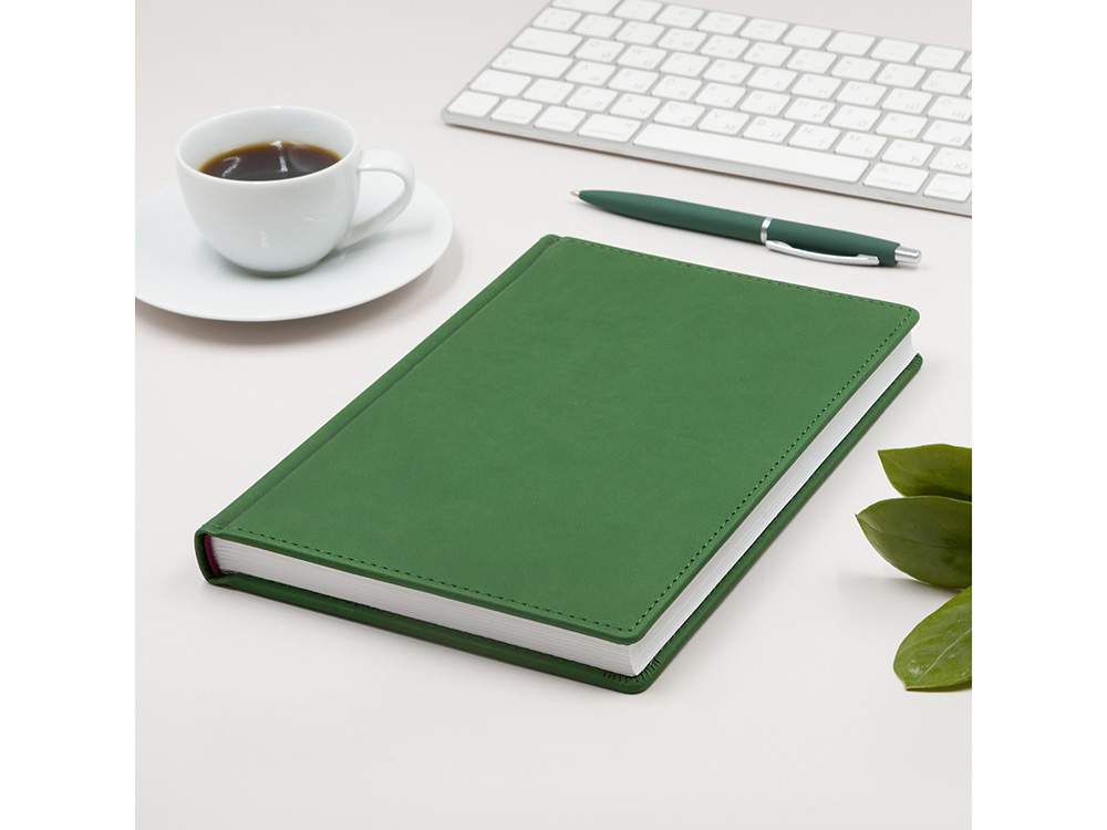 Ежедневник А5 датированный Velvet 2026, зеленый с логотипом компании - отличный способ заявить вашу корпоративную идентичность.