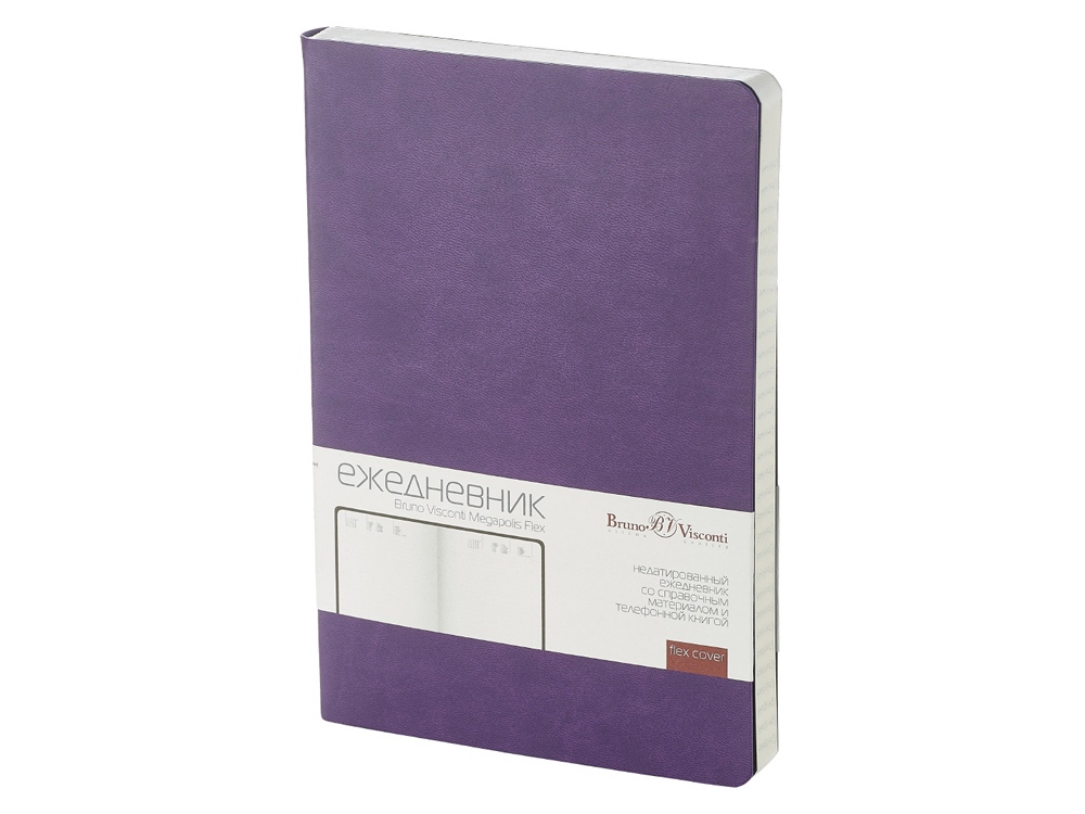 Недатированный ежедневник Megapolis Flex от бренда Bruno Visconti - это качественный корпоративный подарок по выгодной цене, произведенный специально под персонализацию. Представлен в универсальном формате А5 и состоит из 272 страниц. Элегантная закругленная flex обложка из гладкого кожзама имеет гибкую конструкцию и приятна на ощупь. А интегральный переплет позволяет сэкономить место в деловой сумке или портфеле – ежедневник можно просто свернуть в трубку или согнуть пополам.