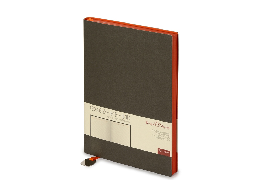 Недатированный ежедневник Mercury от бренда Bruno Visconti - это качественный корпоративный подарок по выгодной цене, произведенный специально под персонализацию. Представлен в современном формате А5. Обложка ежедневника выполнена из современного переплетного материала с двойной закладкой с шильдом. Цветной край блока, а также отделка листов цветными деталями - это переплетение технологических новинок и оригинальных дизайнерских решений.