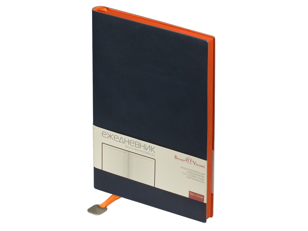 Недатированный ежедневник Mercury от бренда Bruno Visconti - это качественный корпоративный подарок по выгодной цене, произведенный специально под персонализацию. Представлен в современном формате А5. Обложка ежедневника выполнена из современного переплетного материала с двойной закладкой с шильдом. Цветной край блока, а также отделка листов цветными деталями - это переплетение технологических новинок и оригинальных дизайнерских решений.