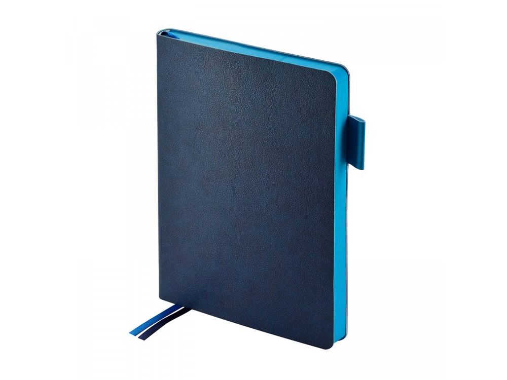 Компания «Эклектика BY» осуществляет нанесение логотипа на сувенирную продукцию: Ежедневник недатированный А5 Boston, темно-синий (голубой обрез). Арт. 423153