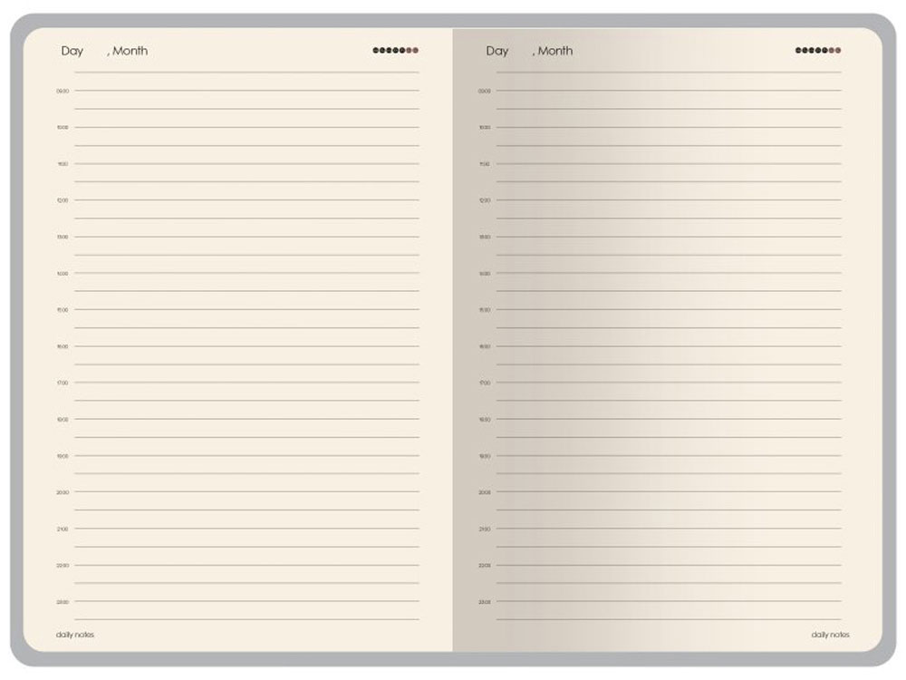 Отличительной особенностью ежедневника является горизонтальная, скрепляющая обложку и блок, тоненькая резинка. Оригинальное решение позволяет раскрывать ежедневник на 180 градусов и вести записи у самого края корешка. Для фиксации второй резинки, не позволяющей ежедневнику раскрываться, предусмотрена выемка на обложке. Обложка тонка, но фактурность придает ей элемент брутальности, а бархатистое нанесение на ее оборотной стороне- благородство и статусность. Картонный карман для визиток, записок, бумаг – функциональная деталь и приятная дополнительная опция. Бумажный блок изготовлен из бумаги бежевого цвета, плотностью 70 г/кв.м и содержит 272 страницы, 23 из которых справочная информация.