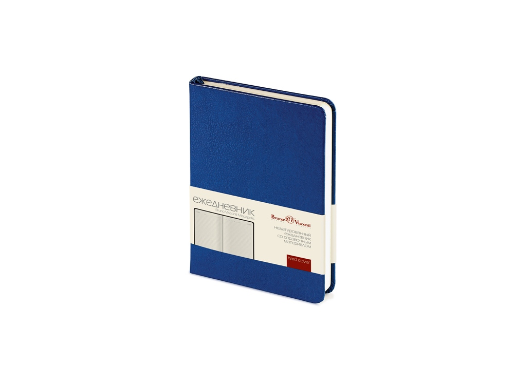 Строгий офисный дизайн, классический долговечный переплетный материал с гладкой фактурой - безусловные преимущества этих корпоративных моделей. Синяя обложка с закругленными уголками станет отличной основой для Вашего фирменного логотипа. Недатированный ежедневник выпускается в формате А6, что соответствует размерам 87*131. Блок включает 200 страниц из бежевой высококачественной бумаги плотностью 70 грамм. Первые 8 листов отведены под справочную информацию. Восемь последних листов снабжены микроперфорацией, гарантирующей аккуратную линию отрыва. Под обложкой расположена шелковая закладка-ляссе.