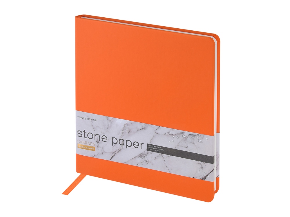 Еженедельник с каменной бумагой А5+ Carrara, оранжевый с логотипом компании - отличный способ заявить вашу корпоративную идентичность.