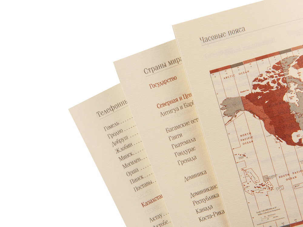 Недатированный блок состоит из 128 страниц, укреплённых на пластиковом полускрытом гребне. На 21 странице размещена справочная информация на русском языке. День недели указан на русском и английском языках.