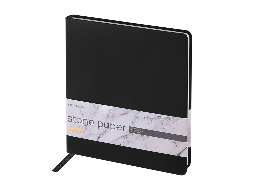 Еженедельник с каменной бумагой А5+ Carrara, черный с логотипом компании - отличный способ заявить вашу корпоративную идентичность.