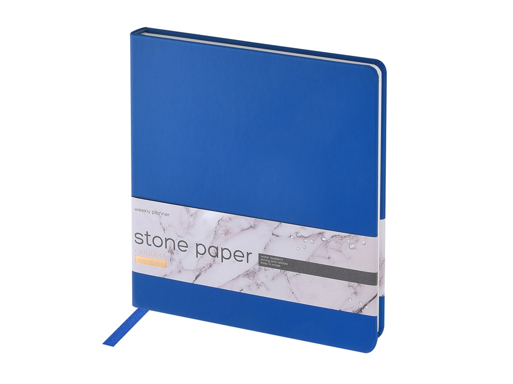 Еженедельник с каменной бумагой А5+ Carrara, синий с логотипом компании - отличный способ заявить вашу корпоративную идентичность.