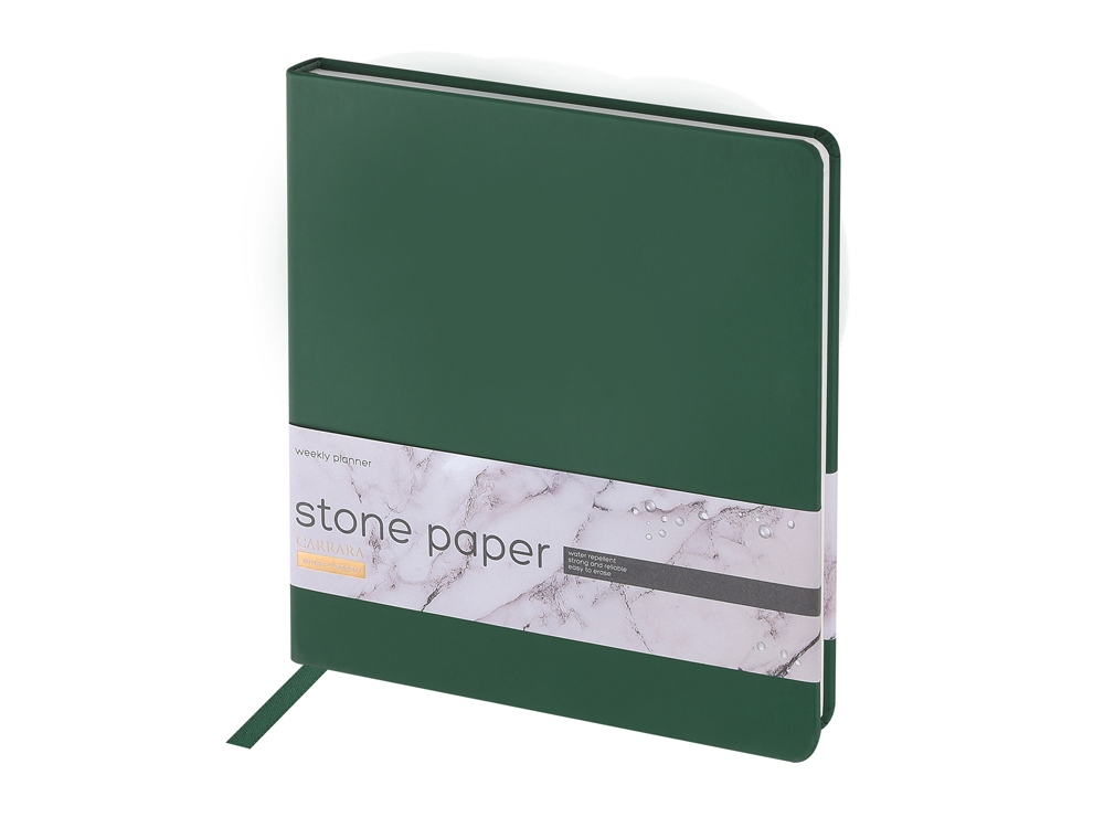 Еженедельник с каменной бумагой А5+ Carrara, зеленый с логотипом компании - отличный способ заявить вашу корпоративную идентичность.