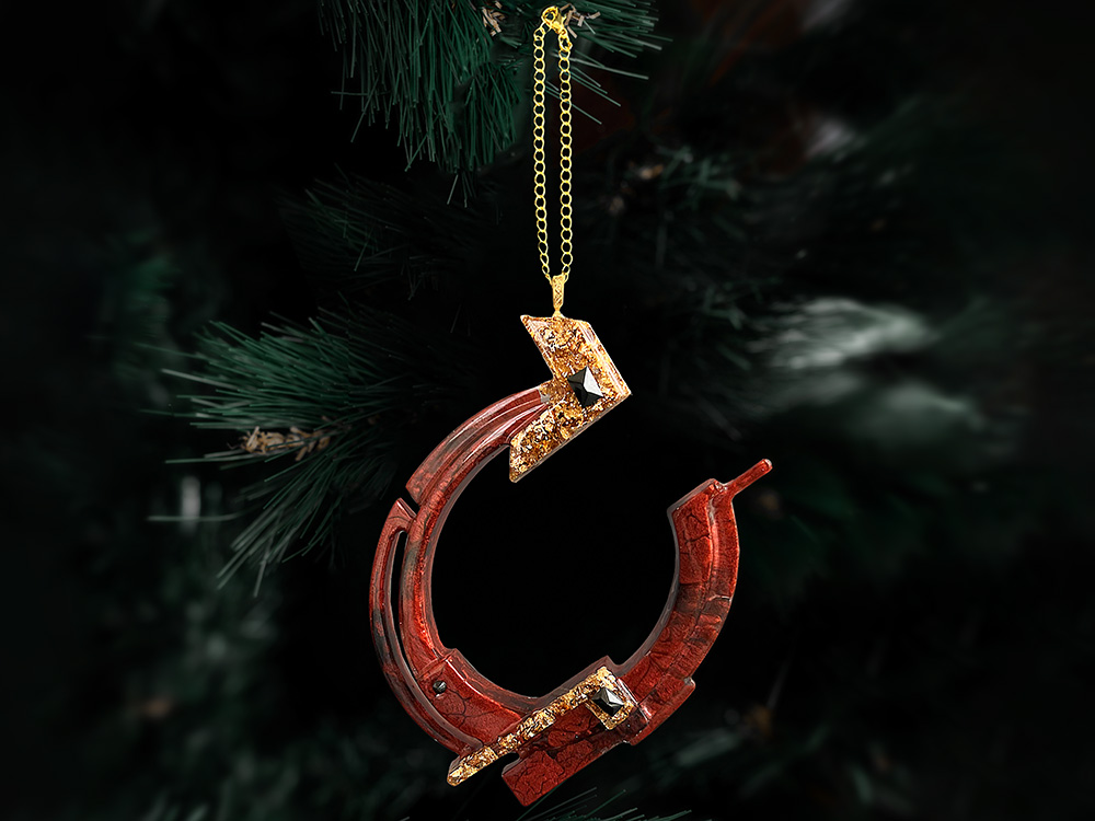 Изделие бережно упаковано в стильную коробку из плотного премиального картона с индивидуальным ложементом, который надёжно фиксирует игрушку. Такой презент не требует дополнительной упаковки и готов порадовать своего обладателя. Для вашего удобства к игрушке прилагается цепочка или ленточка, с помощью которой вы легко сможете подвесить её на ёлку.