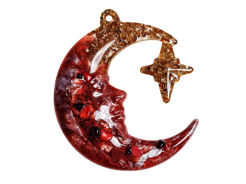 Материал: ювелирная смола, коралл, цитрин, горный хрусталь, золотая поталь