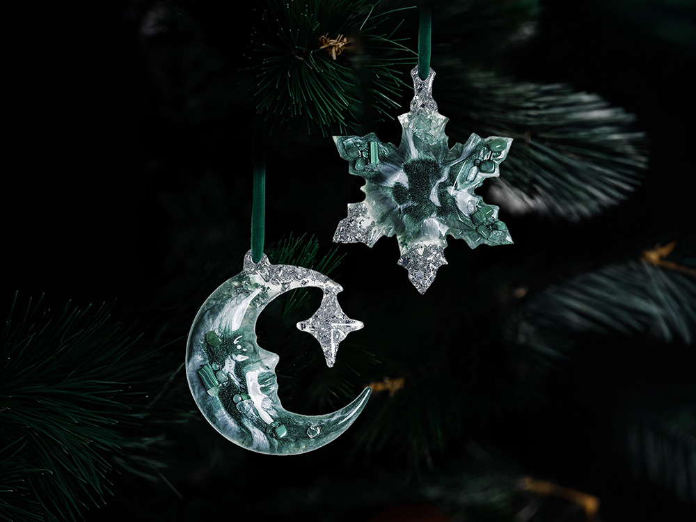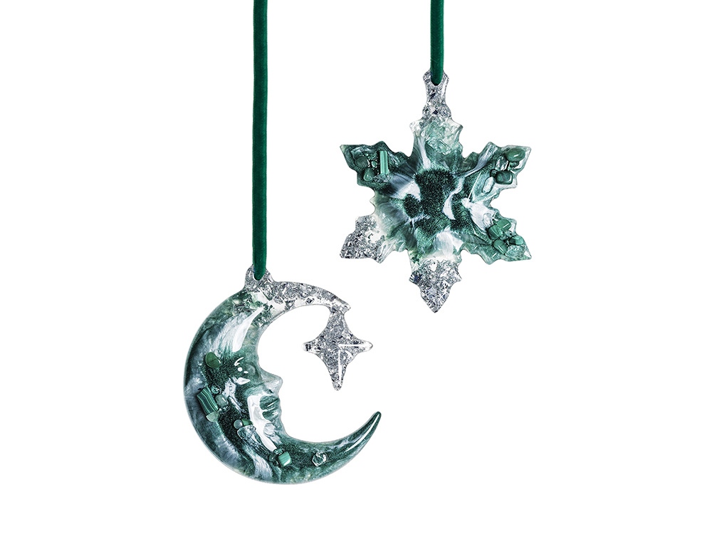 Компания «Эклектика BY» осуществляет нанесение логотипа на сувенирную продукцию: Елочные игрушки (Полумесяц+Снежинка) Авантюрин зеленый. Арт. 445570
