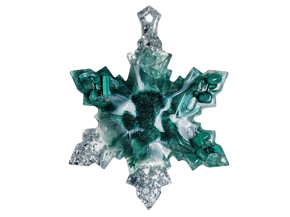 Материал: ювелирная смола, горный хрусталь, малахит, авантюрин зеленый