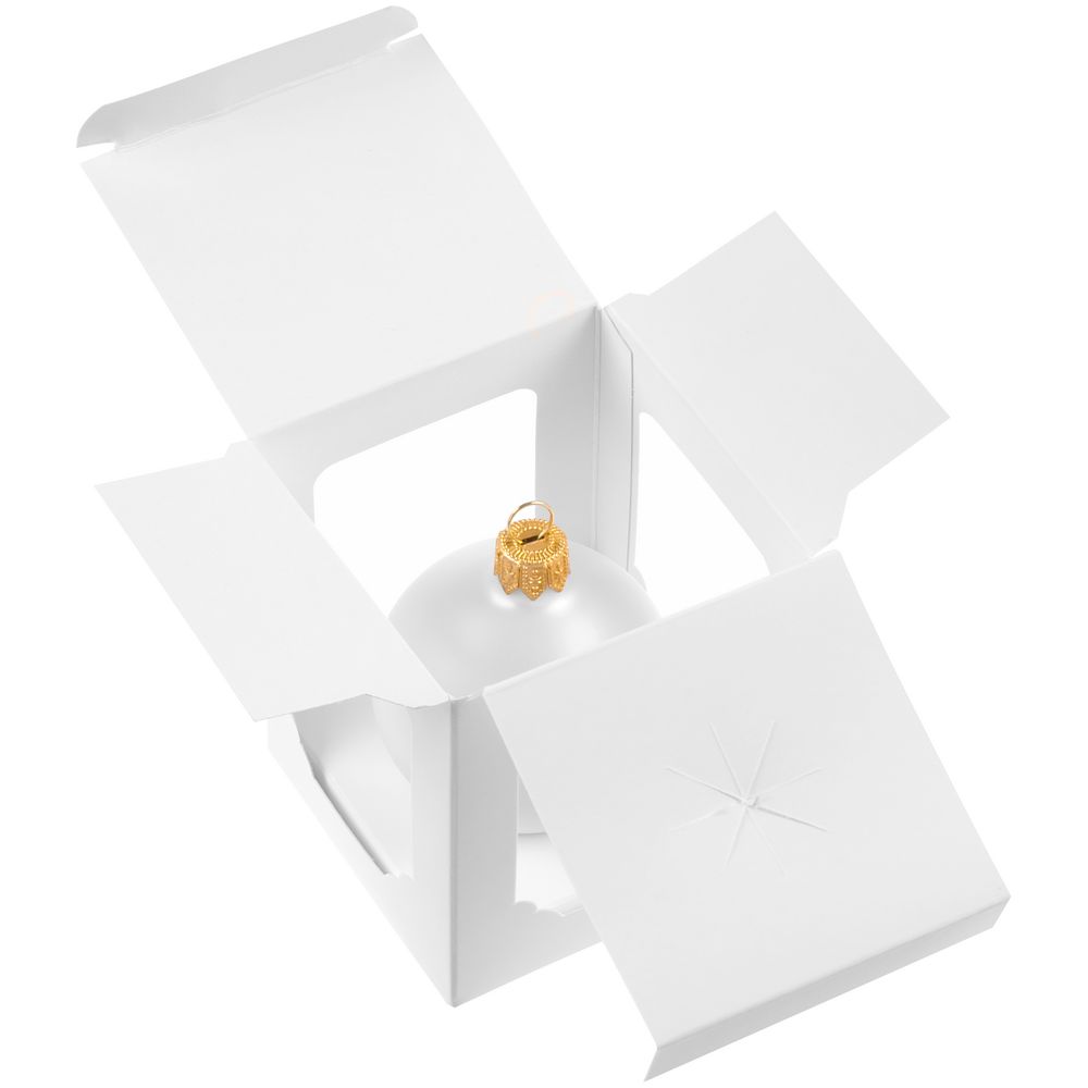 Елочный шар Gala Matt в коробке, 8,5 см, белый с логотипом компании - отличный способ заявить вашу корпоративную идентичность.