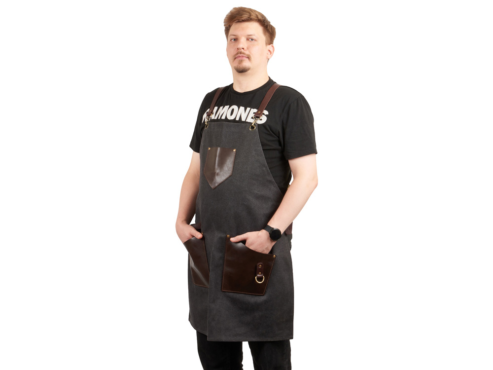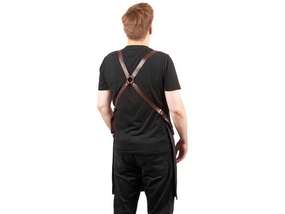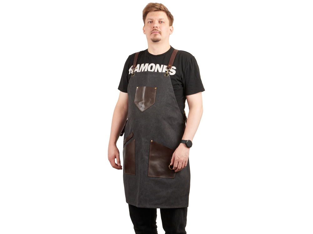 Фартук из канваса с ремнями из натуральной кожи, материал: канвас смесовый, плотность 450 гр/м, натуральная кожа КРС, цвет черный, коричневый темный