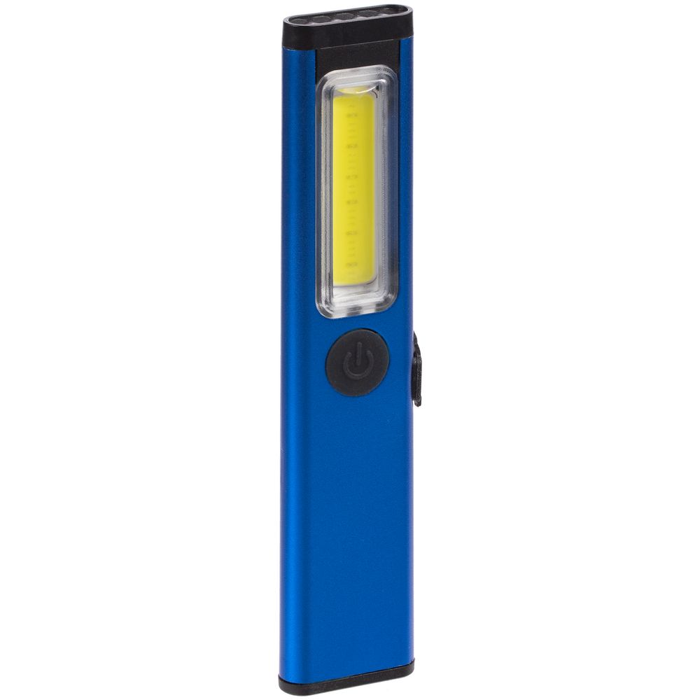 Фонарик-факел аккумуляторный Wallis с магнитом, синий с логотипом компании - отличный способ заявить вашу корпоративную идентичность.