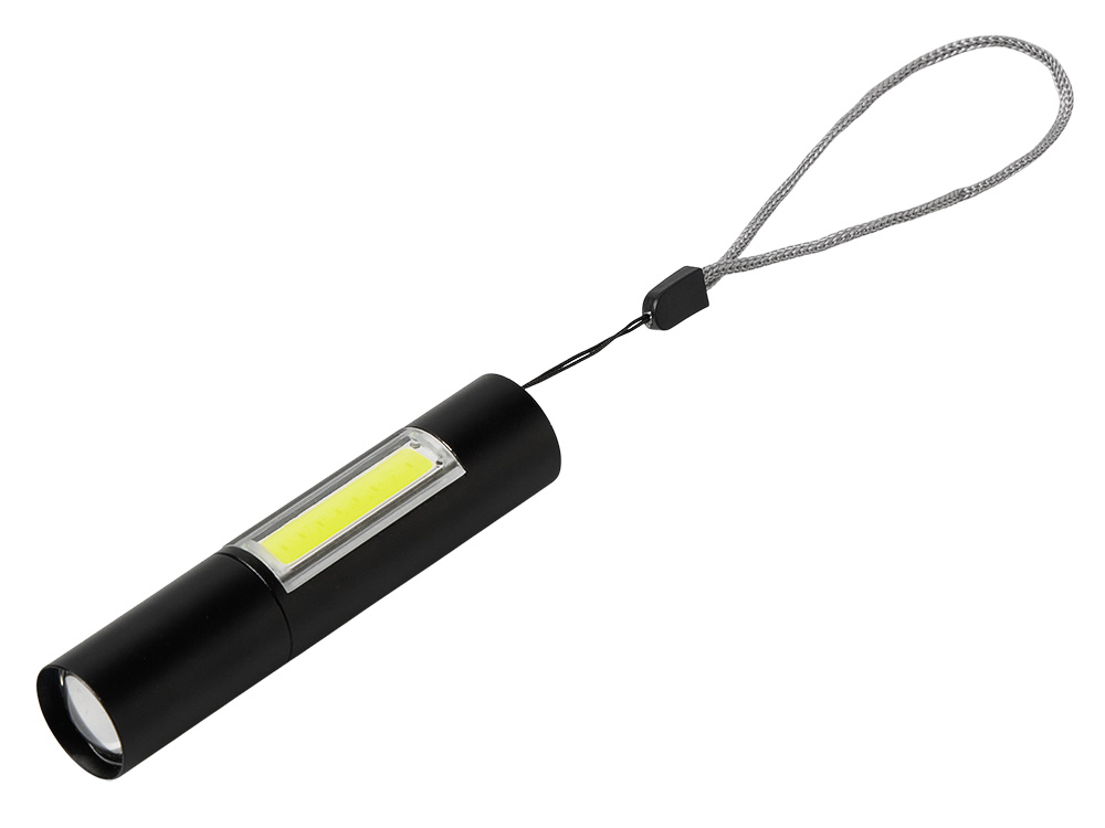 Компания «Эклектика BY» осуществляет нанесение логотипа на сувенирную продукцию: Фонарик с фокусировкой и боковым светильником Дарт Т, 350+200 Лм, черный. Арт. 463441