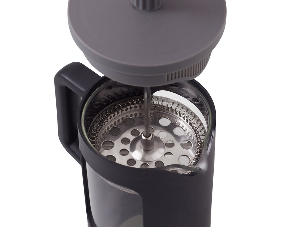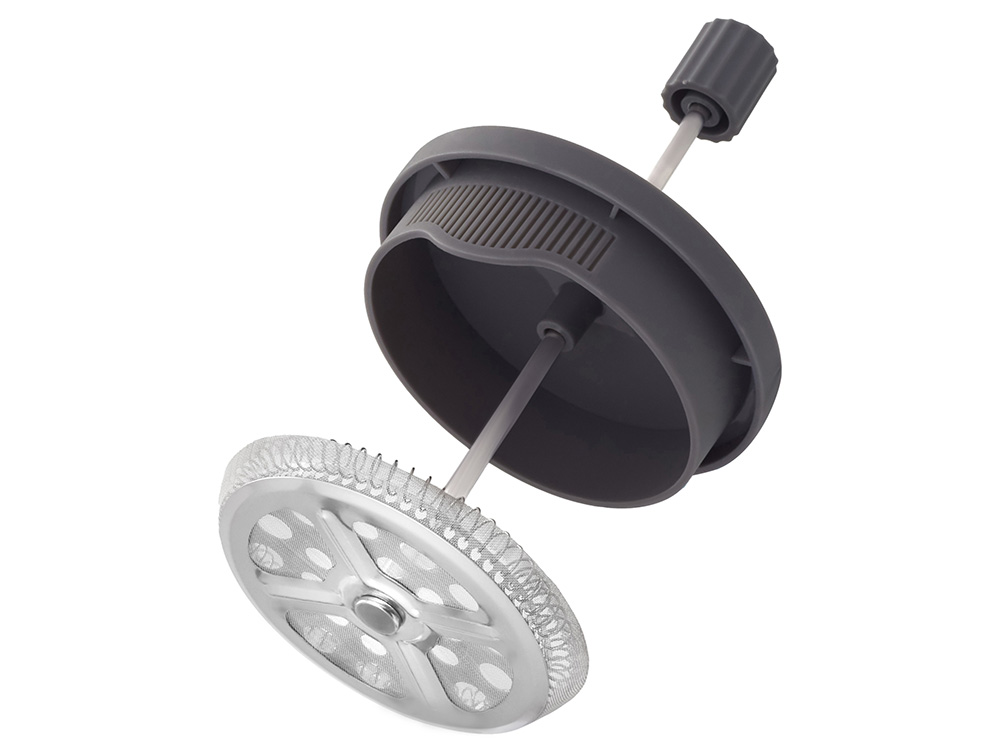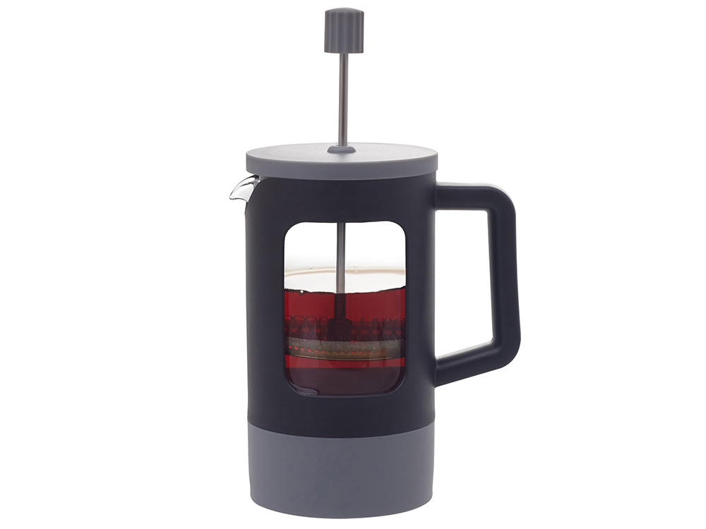 Сдержанная гармония черного и серого в пластиковом корпусе делает этот френч-пресс стильным акцентом любой кухни.