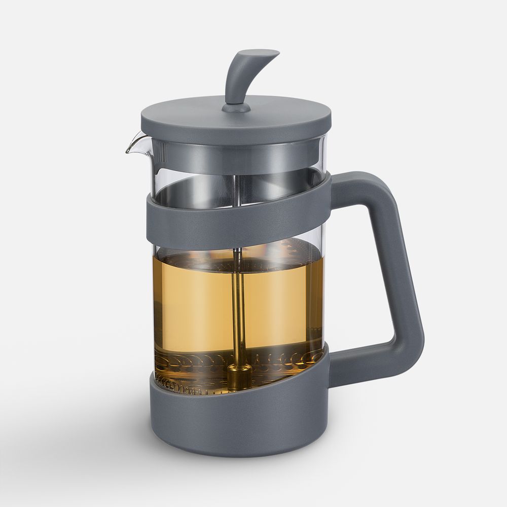 Колба из боросиликатного стекла способна выдерживать температуры до +110°С. Пластиковые детали изготовлены из прочного и нетоксичного материала, а пресс-фильтр — из нержавеющей стали. Носик с системой «антикапля» предотвращает проливание, позволяя аккуратно наливать горячий чай или кофе. Прозрачные стенки позволяют легко определить крепость заваренного напитка. Модель также оснащена ненагревающейся ручкой, что делает использование удобным и безопасным.
