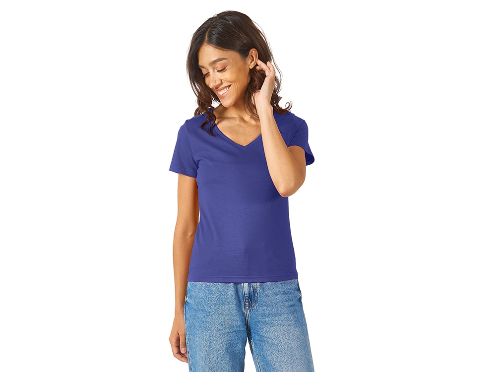 Женская футболка из натурального хлопка с элегантным V-образным вырезом. Материал отлично подходит для нанесения рекламной информации. Натуральная ткань не вызывает раздражения кожи.