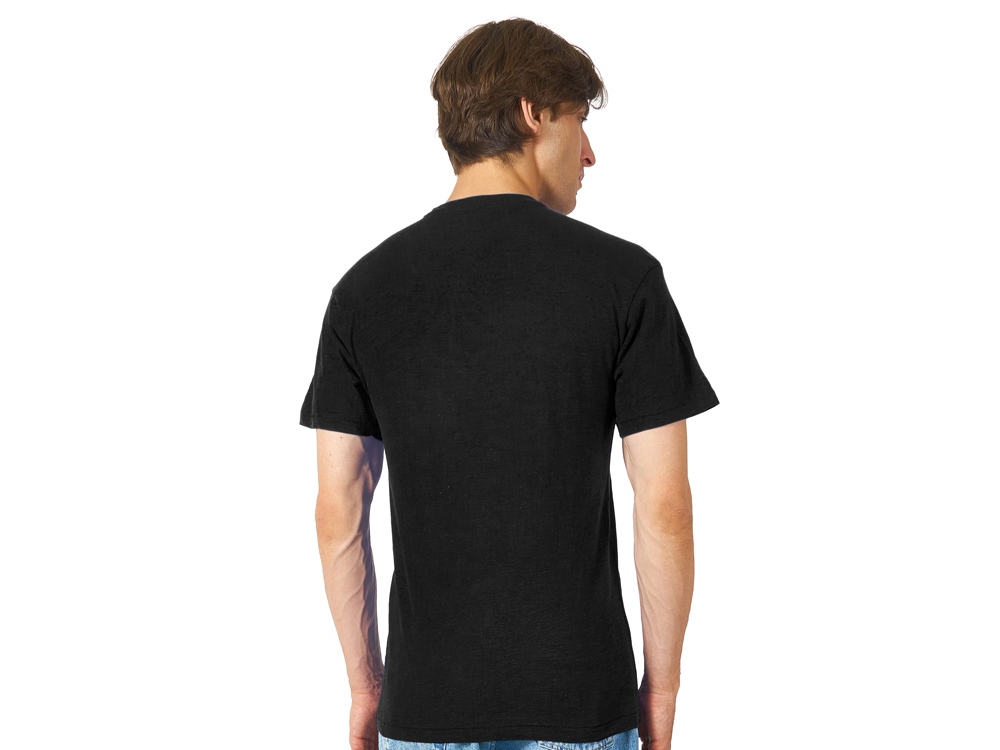 Полотно футболки имеет необычную структуру - с протяжками, но при этом гладкую поверхность, что обеспечивает идеальную поверхность для нанесения: прямая печать, трафаретная или термотрансфер прекрасно ложатся на такое полотно. Декоративная отстрочка по низу рукавов и изделия, а также отстрочка по горловине позволяют футболке дольше сохранять форму.