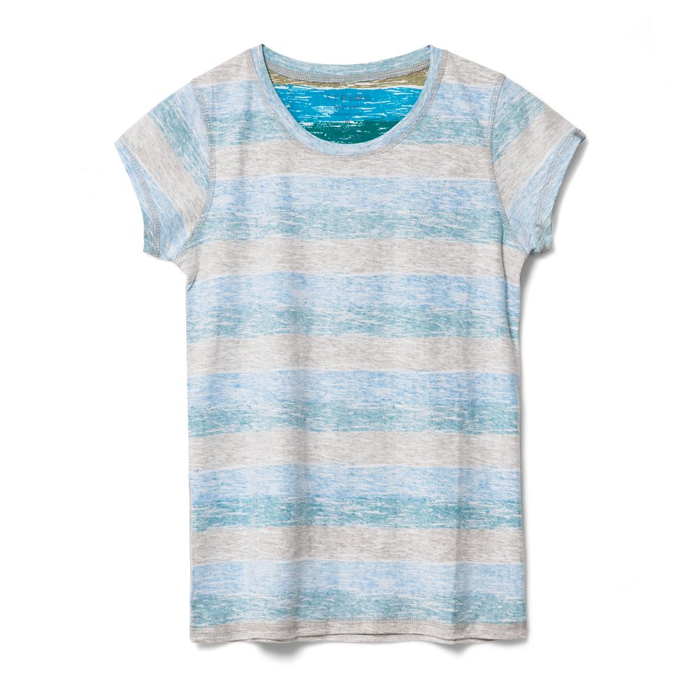 Двусторонняя женская футболка с круглым вырезом и плоскими швами.
