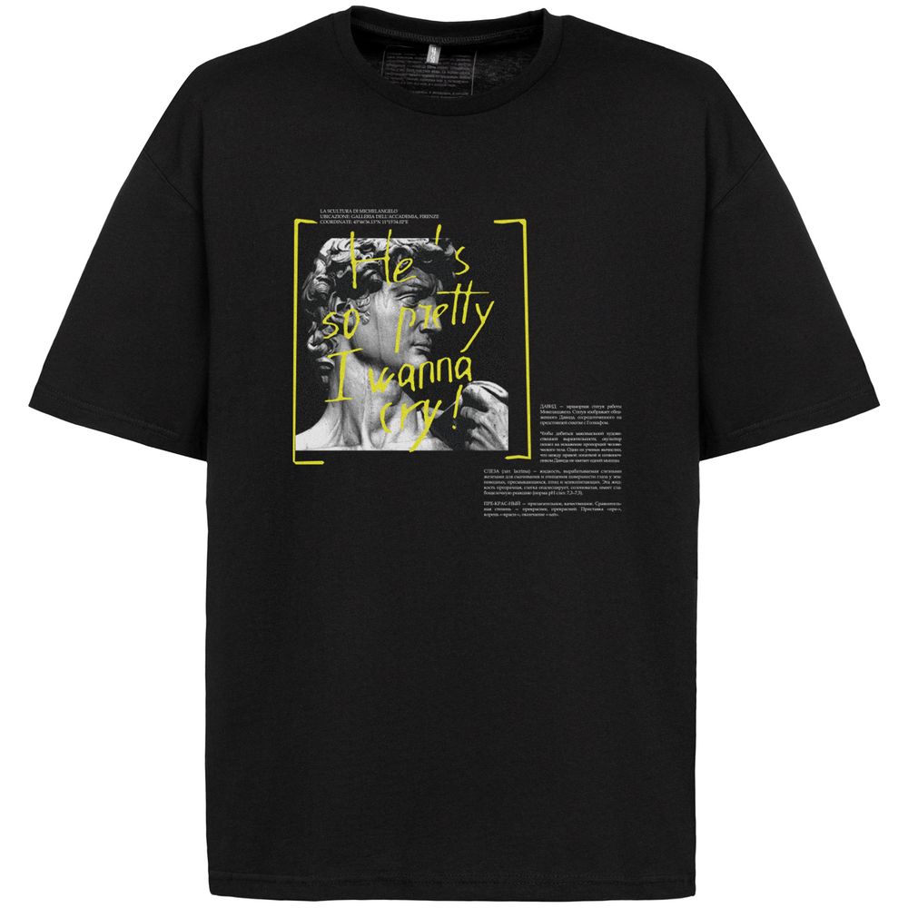 Футболка оверсайз «He is So Pretty. Давид», черная, размер M/L с логотипом компании - отличный способ заявить вашу корпоративную идентичность.