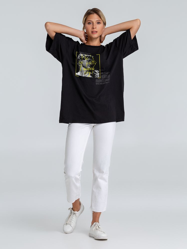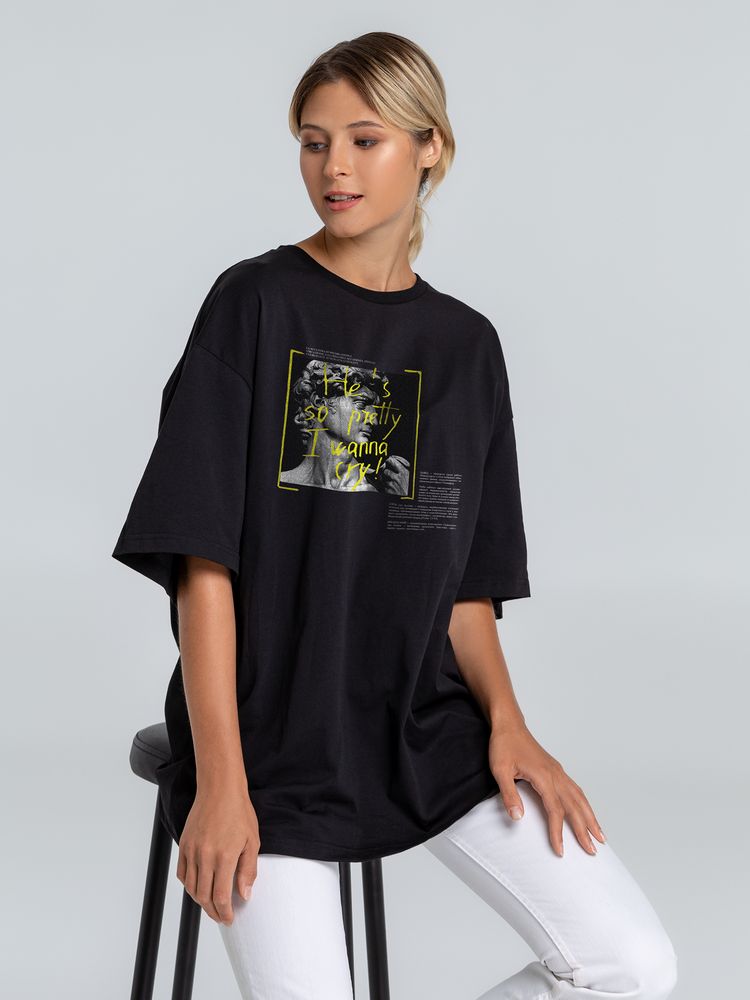 Футболка оверсайз «He is So Pretty. Давид», черная, размер XS/S с логотипом компании - отличный способ заявить вашу корпоративную идентичность.