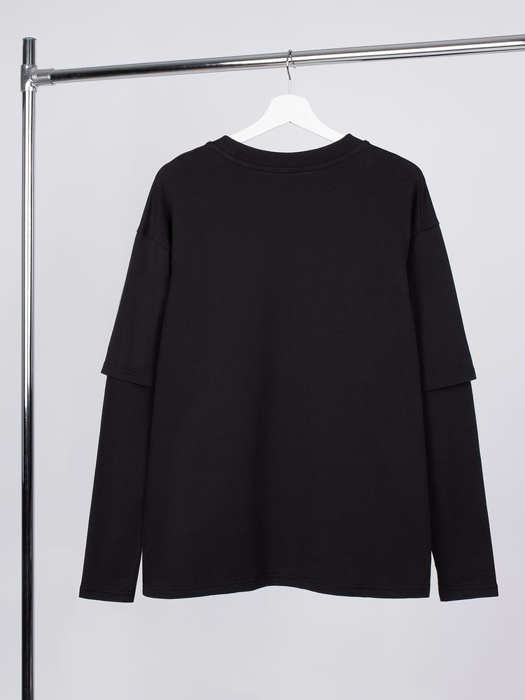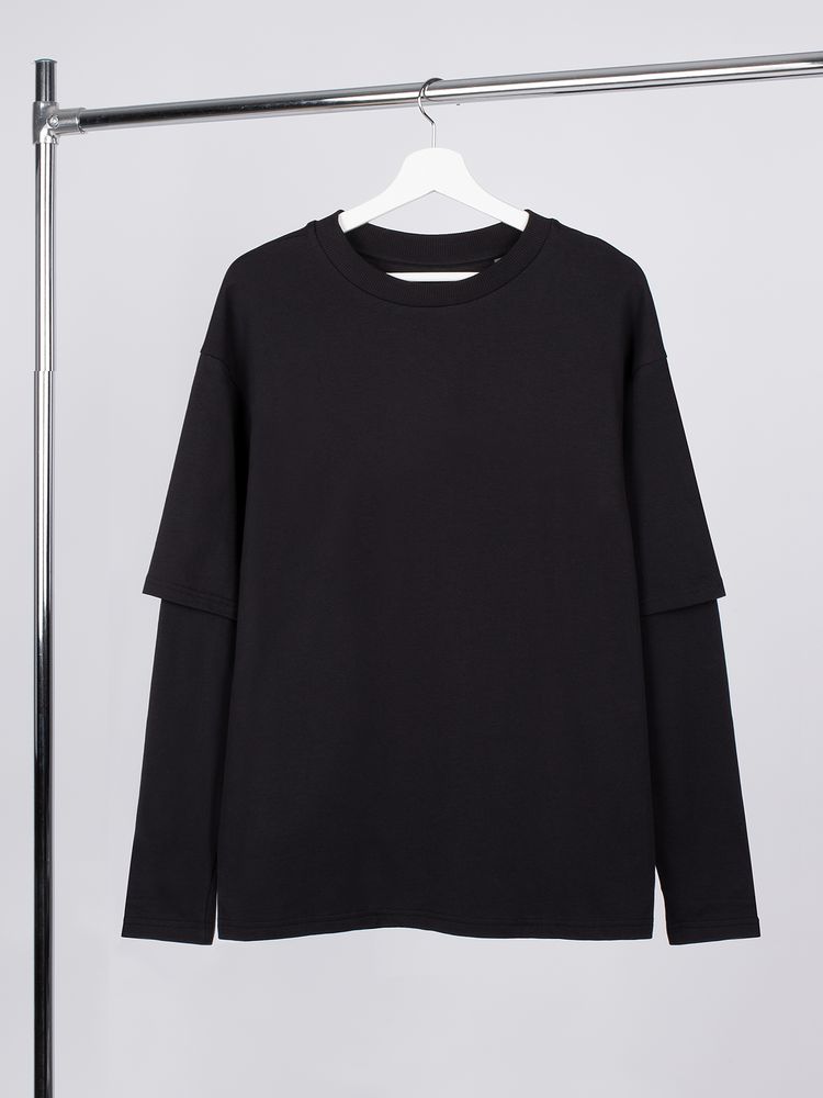 Футболка оверсайз с двойным рукавом Kosmos, черная, размер XS/S с логотипом компании - отличный способ заявить вашу корпоративную идентичность.