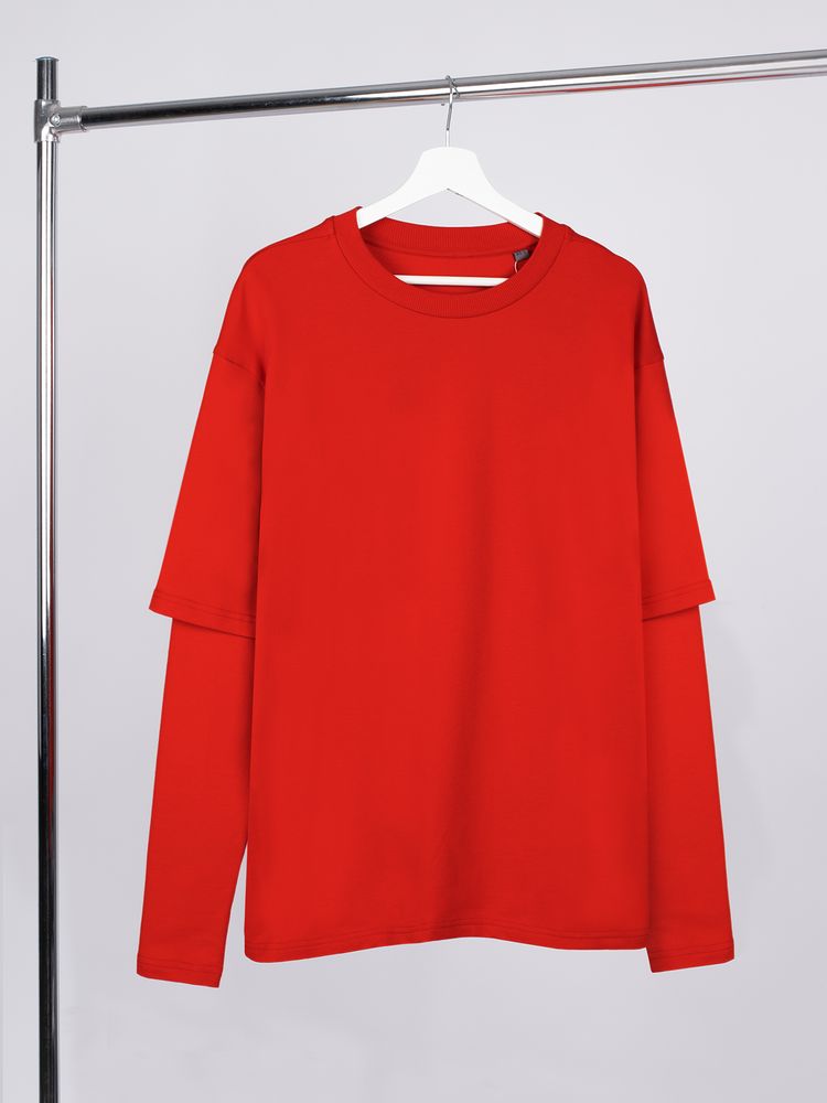 Футболка оверсайз с двойным рукавом Kosmos, красная, размер M/L с логотипом компании - отличный способ заявить вашу корпоративную идентичность.