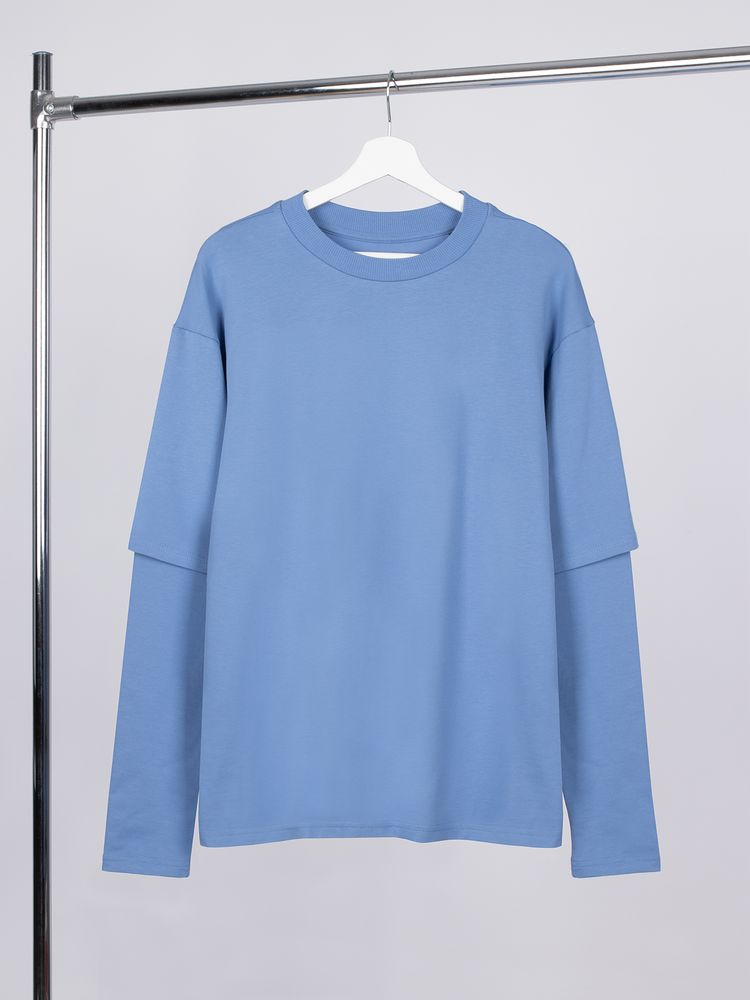 Футболка оверсайз с двойным рукавом Kosmos, синяя, размер XL/XXL с логотипом компании - отличный способ заявить вашу корпоративную идентичность.