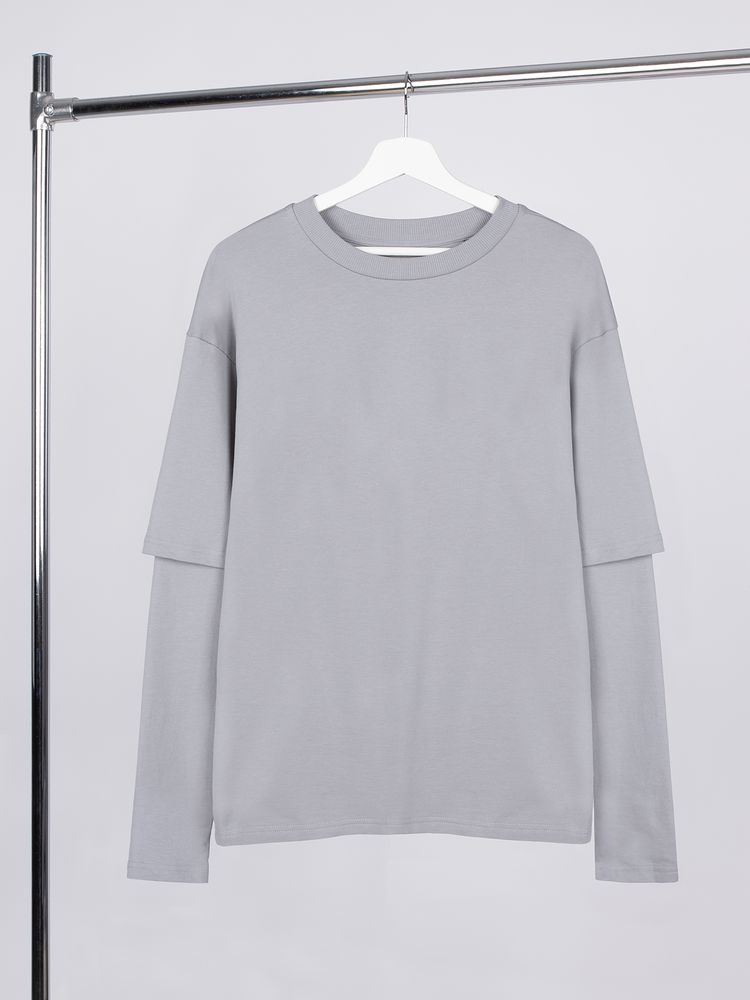 Футболка оверсайз с двойным рукавом Kosmos, светло-серая, размер M/L с логотипом компании - отличный способ заявить вашу корпоративную идентичность.