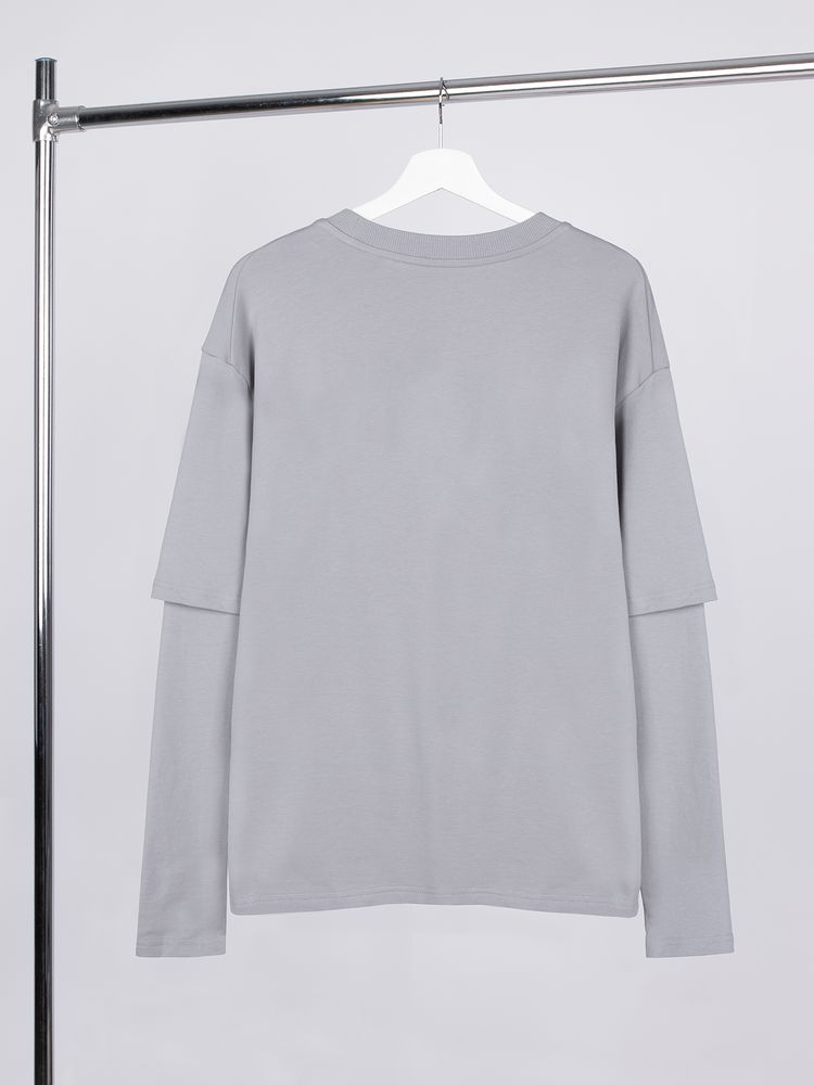 Футболка оверсайз с двойным рукавом Kosmos, светло-серая, размер XL/XXL с логотипом компании - отличный способ заявить вашу корпоративную идентичность.