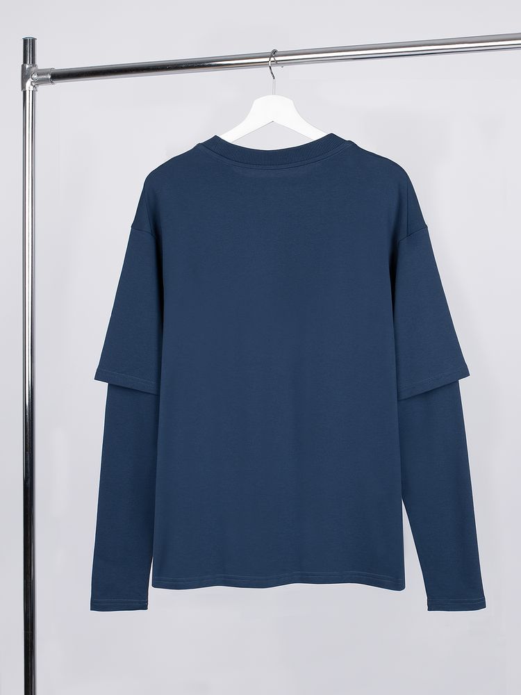 Футболка оверсайз с двойным рукавом Kosmos, темно-синяя, размер M/L с логотипом компании - отличный способ заявить вашу корпоративную идентичность.